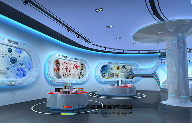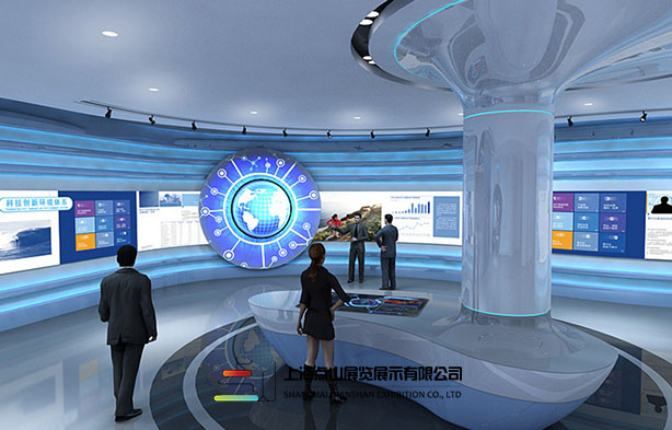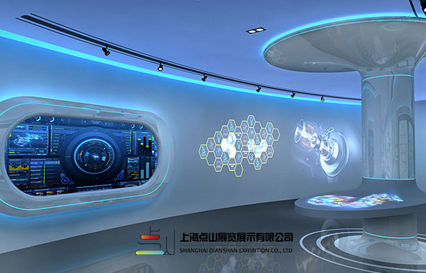 因展廳面積有限,可我司仍然提煉出2大特色亮點“發展成就體驗互動”“未來之光”,通過造型、燈光等手段突出重點展示內容,對于企業發展歷程和未來展望在僅有的展示空間內,得到淋漓盡致的體現。