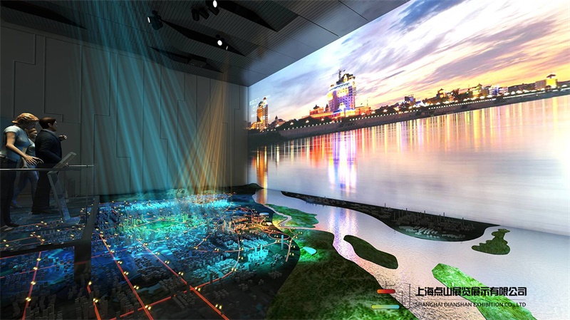 展廳共分為序廳、智慧、速度、夢想四個部分,來展示城市的今昔對比以及未來展望。同時項目在核心創意和亮點上,引用了多種多媒體技術,從而呈現出極其豐富和具有科技感的展示效果。