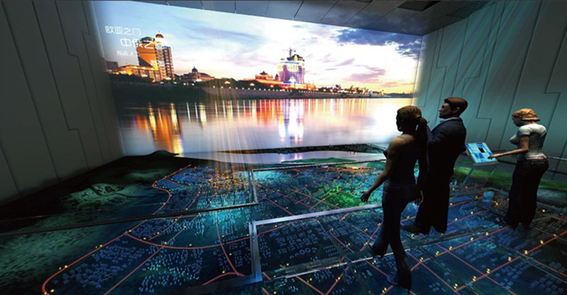 聲光電一體化沙盤是以制作精細的實體模型為基礎,結合聲、光、電、影像,通過專業的同步控制軟件對聲、光、影像同步控制,展現出惟妙惟肖的效果和炫麗多彩的視覺沖擊,以生動形象的姿態向參觀者演示地方各個區域及街道、生態環境、人居,吸引參觀者參與光電沙盤的互動,更加充分了解展示的地方。 光電沙盤可以通過多種方式進行互動,如紅外感應觸發、觸摸屏控制、激光筆觸發等。